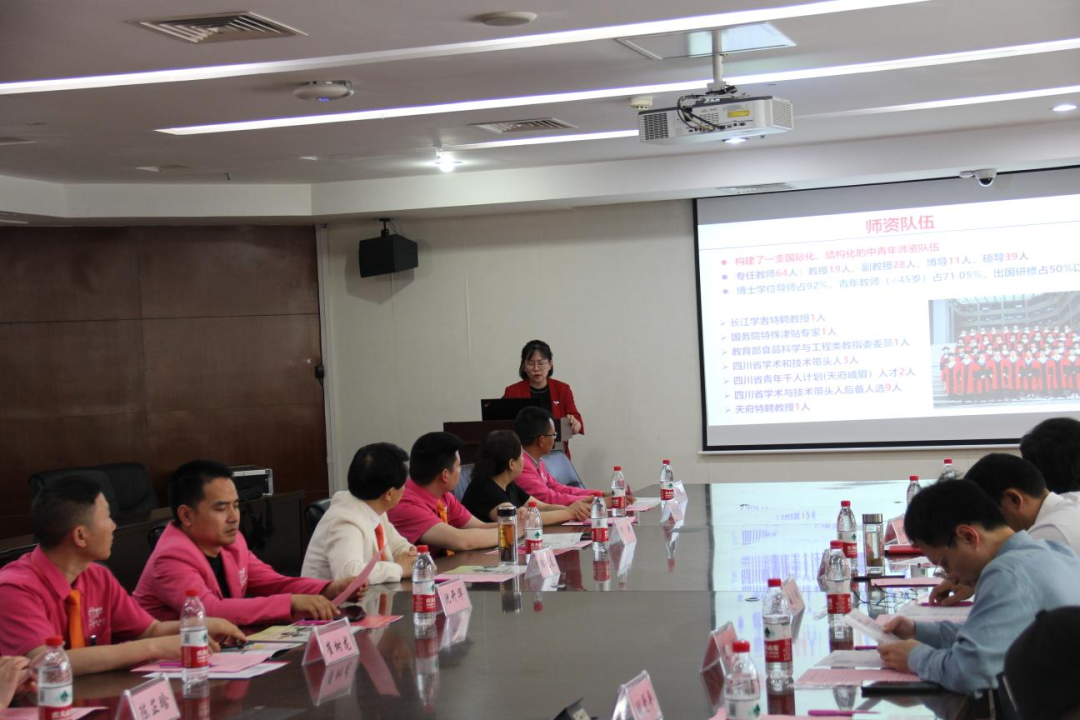 主持人湯瑞瑞代表四川農(nóng)業(yè)大學(xué)食品學(xué)院對光友薯業(yè)一行表示熱烈歡迎,一一介紹校方參會人員,并簡略講解了學(xué)院的發(fā)展與現(xiàn)狀。