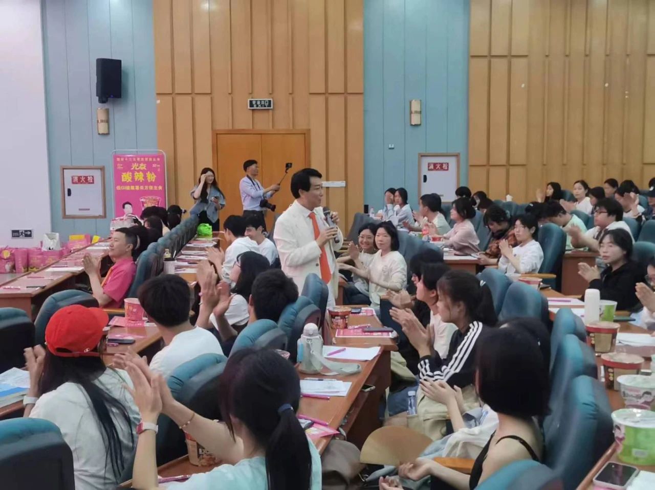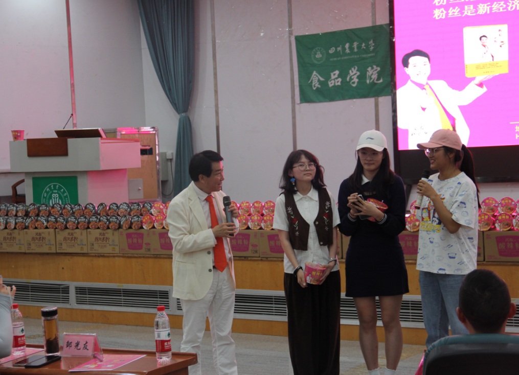 下午三時許,中國食品產(chǎn)教融合共同體副理事長、中國食品科學(xué)技術(shù)學(xué)會理事、方便粉絲方便米粉發(fā)明人、方便粉絲專家、教授級高工、新中國成立60年“三農(nóng)”模范人物、光友薯業(yè)創(chuàng)始人、光友薯業(yè)董事長鄒光友在四川農(nóng)業(yè)大學(xué)食品學(xué)院如期舉行全國高校巡回演講第169場——《粉絲讓人生更精彩》,這場關(guān)于創(chuàng)業(yè)的勵志演講大獲成功,近700人的禮堂現(xiàn)場一片歡騰,在座師生和直播間的觀眾無不受益良多。