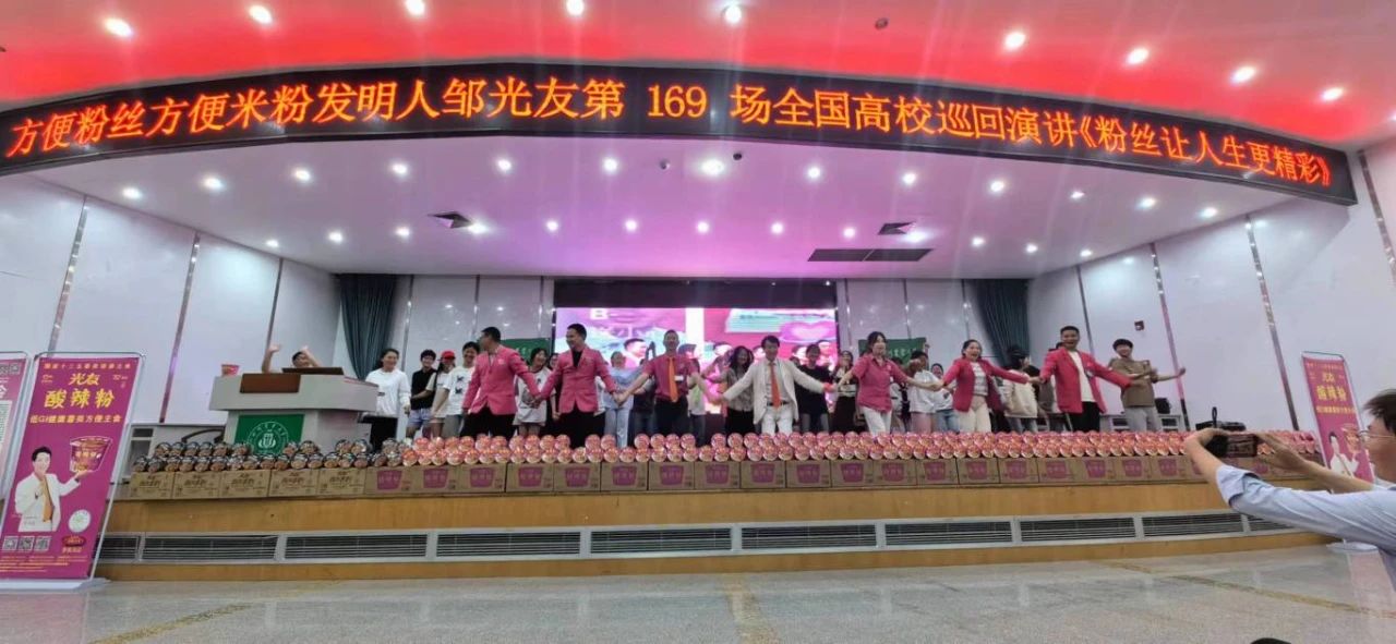 4月25日,陽光曜靈,和風(fēng)容與。正是麗日當(dāng)空時,光友薯業(yè)走進(jìn)了綠意盎然、洋溢著青春活力的四川農(nóng)業(yè)大學(xué)食品學(xué)院,開展了校企深化合作交流座談會,組織考察校區(qū)各食堂、超市,中國食品產(chǎn)教融合共同體副理事長、中國食品科學(xué)技術(shù)學(xué)會理事、方便粉絲方便米粉發(fā)明人、方便粉絲專家、教授級高工、新中國成立60年“三農(nóng)”模范人物、光友薯業(yè)創(chuàng)始人、光友薯業(yè)董事長鄒光友鄒光友成功舉行了全國高校第169場創(chuàng)業(yè)勵志演講。