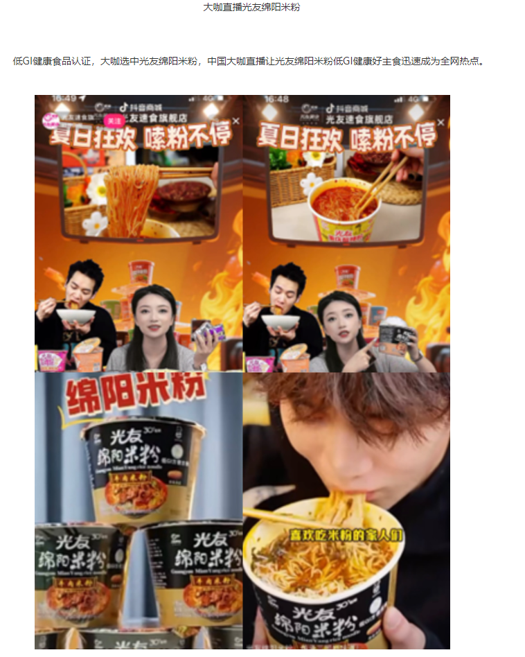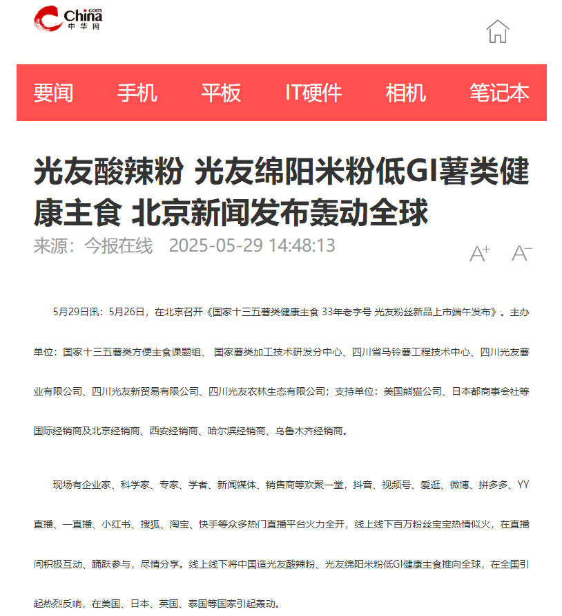 轉(zhuǎn)載中華網(wǎng)——光友酸辣粉 光友綿陽米粉低GI薯類健康主食 北京新聞發(fā)布轟動全球