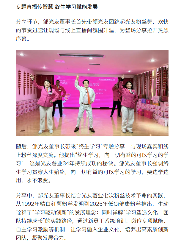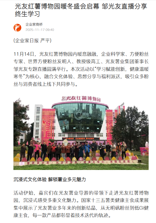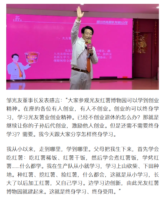 轉(zhuǎn)載搜狐網(wǎng)-光友紅薯博物園暖冬盛會啟幕 鄒光友直播分享終生學習