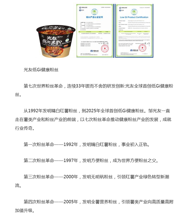 轉(zhuǎn)載鳳凰網(wǎng)-第七次世界粉絲革命——光友全球首創(chuàng)低Gi健康粉絲