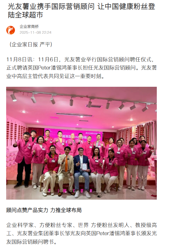 光友薯業(yè)攜手國(guó)際營(yíng)銷(xiāo)顧問(wèn) 讓中國(guó)健康粉絲登陸全球超市