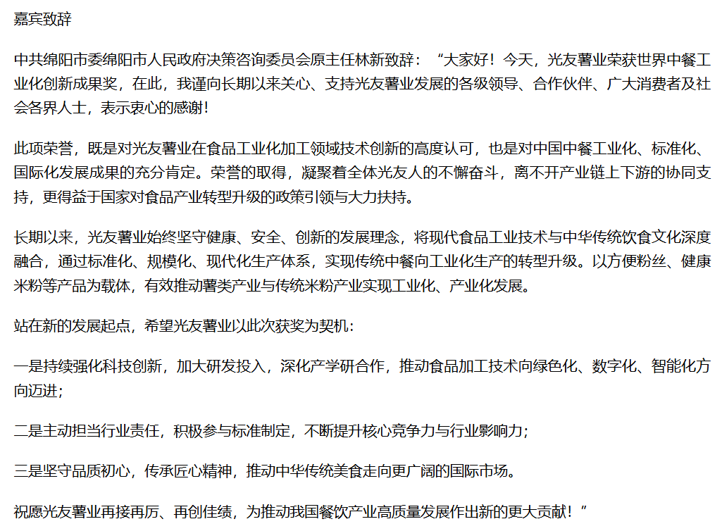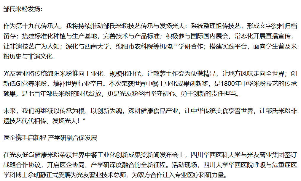 轉(zhuǎn)載鳳凰網(wǎng):光友低Gi健康米粉獲世界中餐工業(yè)化創(chuàng)新成果獎(jiǎng)新聞發(fā)布會(huì)圓滿(mǎn)召開(kāi)